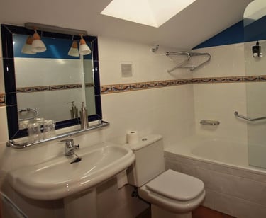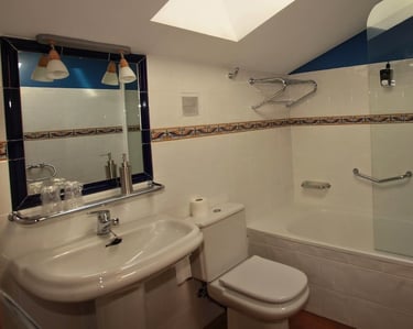 Una habitación familiar comunicada, con dos camas individuales con un baño privado y cama de matrimonio, en una segunda habitación. (Solo se accederá al segundo dormitorio que dispone de cama de matrimonio, si se reserva para tres o más personas.)