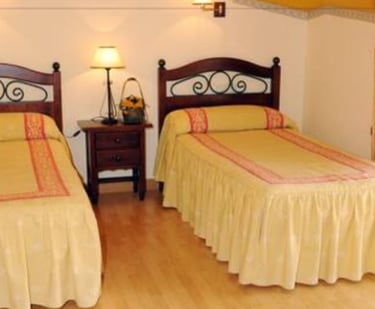 Disponemos de CINCO habitaciones dobles, con dos camas individuales, con baño privado y televisión.